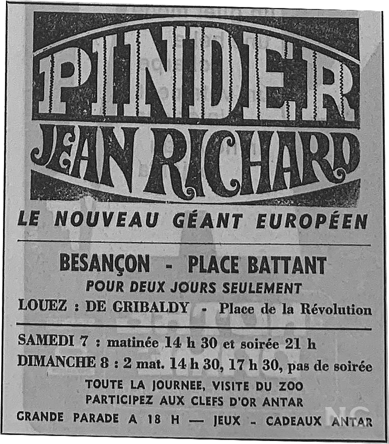 Octobre 1972, à Besançon, le cirque Pinder s'installe à Battant. Les billets sont en vente chez de Gri. Attention Mesdames et Messieurs, dans un instant ça va commencer.