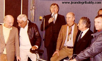 Présentation de l'équipe 1983, Paris. Jean en compagnie de Michel Audiard, Charles Gérard, André Pousse et Pierre Douglas (masquant Charles Monnot).