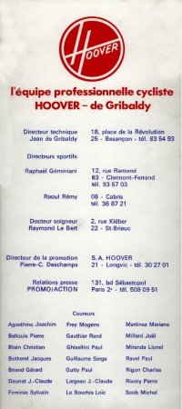Tout le staff de l'Equipe Hoover de Gribaldy (1971).